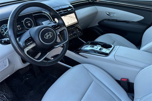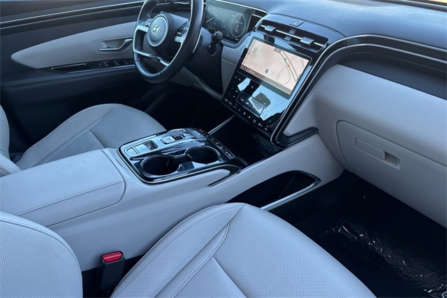 This Plug-In Hybrid ELECTRIC has got it all! 2024 Hyundai Tucson PHEV Limited All-Wheel-Drive. Powered by both an electric motor plus a turbocharged 1.6L ICE engine. It's Ash Black with Gray leather seat trim. It's got vented & heated power seats, in front and heated seats in back too. There's a BOSE premium audio system with navigation, Apple Carplay & Android Auto, wireless phone charging, and an Aeriel View Camera so you can see all around your car. Not only does it have remote starting but can even park itself with it's Remote Parking System. Safety features include smart cruise control, blind spot monitors, lane keeping assist, and forward collision warning & braking with pedestrian detection. Luxuries include a panoramic moonroof with power sunshade, a hands-free power liftgate, universal garage opener, heated steering wheel, and even the ability to use your phone as a key.