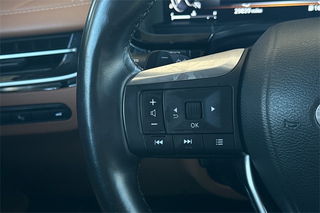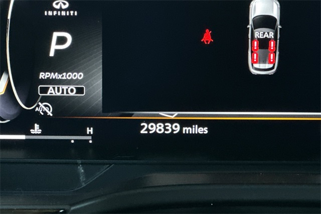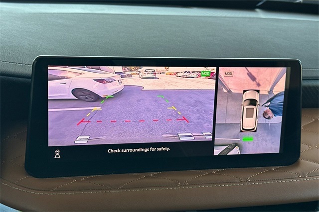 2024 INFINITI QX60 Autograph with All-Wheel-Drive. Motoring in the lap of luxury, this is the top of the line model in Graphite Shadow with a Black Obsidian colored roof and a saddle brown interior that's equipped with a 17 speaker BOSE Performance premium audio system with wireless Apple Carplay/Android Auto/navigation with traffic info and a built in Wi-Fi hotspot. There's a 12.3" interactive display with head-up instrumentation to help you keep your eyes on the road. The quilted quad captain's chairs are trimmed in semi aniline leather. The front seats have massagers, heating, and cooling. Even the 2nd row seats are heated, as is the steering wheel. Woodgrain trim, illuminated door sills, and a 2nd row console adds to the opulence. There's a power panoramic moonroof with power sunshade, an around view monitor, auto-dimming mirrors with garage opener, front & rear parking sensors. It's equipped with a 6,000lb towing package that includes trailer sway control, a tow hitch receiver, trailer pre-wiring and a transmission cooler and auto-leveling adaptive LED lighting. There are blind spot monitors, rear cross traffic alert, and more.