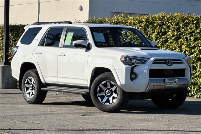 2024 Toyota 4Runner TRD Off-Road Premium 4-Wheel-Drive. This is the true classic in premium Off-Road Trim. Powered by the tried and true 270HP 4.0L V6 ( no whingey 4 cylinder turbos here ) and a multi-Terrain select 4WD with ,CRAWL control. There are skid plates underneath for extra protection. It's Ice Cap with Black/Graphite SofTex Seat Trim. The front seats are heated and powered, it's got the smart entry system with push button starting, the audio system has Apple Carplay & Android Auto capability plus a 120V power outlet, you can tow up to 5,000 lbs with the integrated tow hitch. There is also radar cruise control, LED headlights, a power operated tailgate window, and much more.