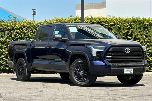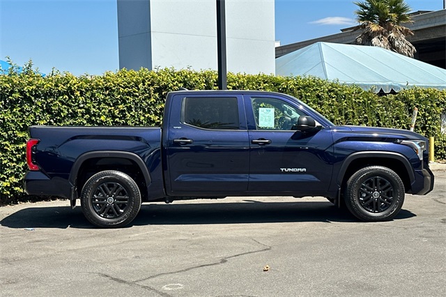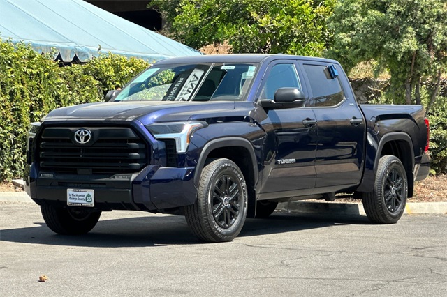 Blueprint 2024 Toyota Tundra SR5 CrewMax. Powered by a 389HP 3.4L V6 that's rated at up to 23mpg. It's Gray Cloth bucket seats, wireless Apple Carplay & Android Auto capability, a power tailgate release, tow hitch receiver, keyless entry, dark privacy glass, radar cruise control, forward collision warning & braking, lane tracing assist, a power sliding rear window, LED head and fog lights, running boards, and much more. It's still under the Toyota factory warranty.