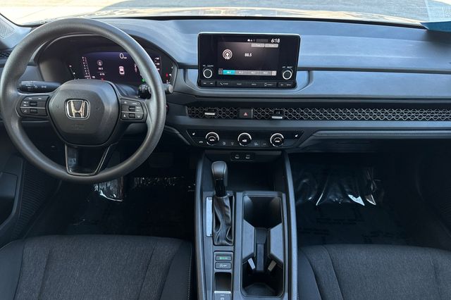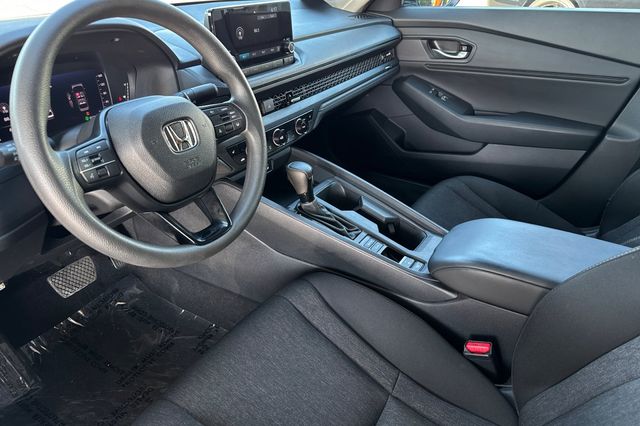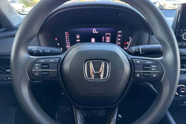 Certified. 2025 Honda Accord SE. It's powered by the 192HP 1.5L 4-cylinder engine with automatic transmission. It's Solar Silver metallic outside with Black cloth on the inside. With only 13,090miles, this nearly-new sedan delivers exceptional fuel economy and Honda reliability. Honda Sensing suite includes adaptive cruise control, forward collision warning, and lane departure warning for active safety protection. There are blind spot monitors in the heated outside mirrors, and a 3-view backup camera with cross traffic alert that provides clear rear visibility for parking. The spacious cabin offers comfortable seating for five with split-folding rear seats to expand cargo capacity. Remote keyless entry, push-button start, a power moonroof, and dual zone automatic climate control add convenience. The infotainment system keeps you connected on every drive. At $29,988, this low-mileage Accord represents outstanding value in the midsize sedan segment. Contact Freeway Honda to schedule your test drive.