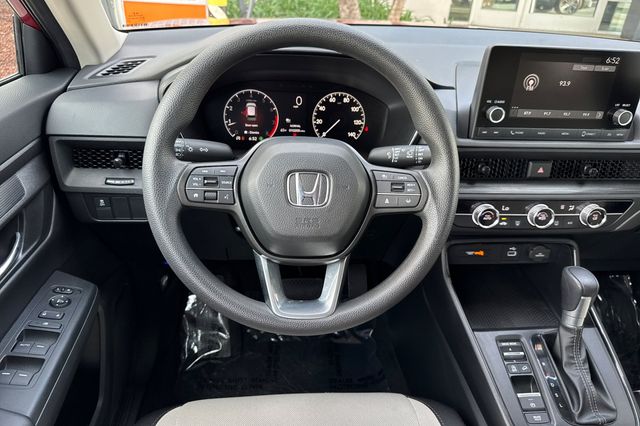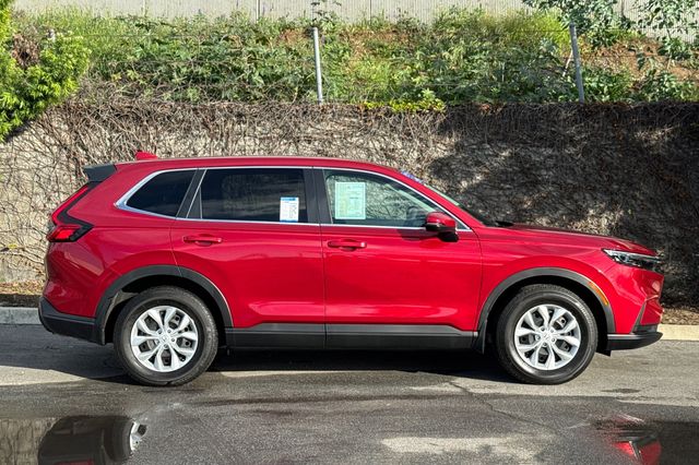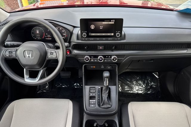 Certified. 2025 Honda CR-V LX. It's powered by the 190HP 1.5L 4-cylinder engine with automatic transmission and Real Time 4WD. It's Radiant Red outside with Gray cloth interior. The front seats are manually adjustable with driver's seat height adjustment. The 60/40 split-folding rear seats expand cargo space when needed. Standard Honda Sensing includes adaptive cruise control, collision mitigation braking, lane keeping assist, and road departure mitigation. There's a multi-angle rearview camera, LED headlights with auto-on/off, and heated side mirrors. The 7-inch touchscreen features Apple CarPlay and Android Auto integration. Dual-zone automatic climate control keeps everyone comfortable. It delivers an EPA-estimated 28 city/34 highway MPG. With 10,191 miles and priced at $20,988, this Canadian-built CR-V offers Honda's proven reliability. Contact Freeway Honda to schedule your test drive.