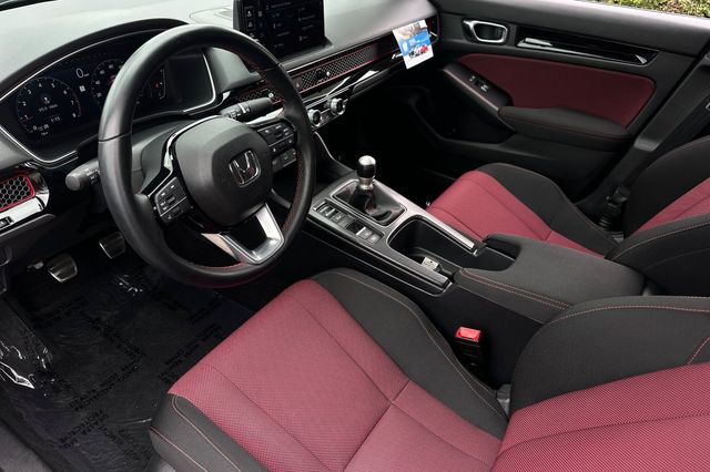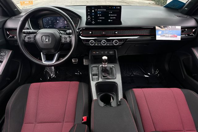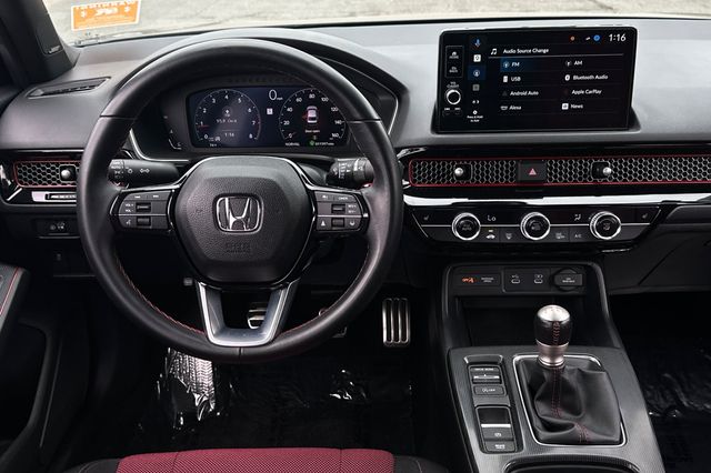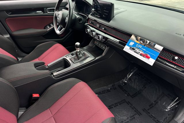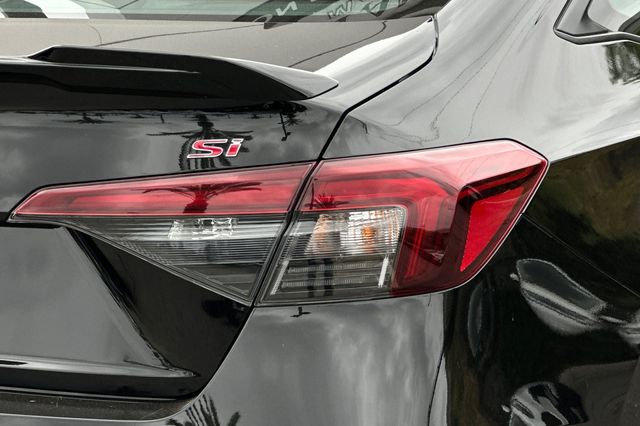 2025 Honda Civic Si powered by the 200HP 1.5L turbocharged 4-cylinder with 6-speed manual transmission. It's Crystal Black Pearl outside with Black/Red Sport Seats on the inside. This Si delivers sport-tuned suspension, limited-slip differential, and rev-matching technology. Safety features include backup camera, blind spot monitoring, lane departure warning, forward collision warning, and adaptive cruise control. The cabin features a BOSE Premium sound system with smartphone integration, automatic climate control, and sport pedals. You get 31 city/37 highway MPG efficiency. It shows 11,586 miles and is priced at $31,988. The Si package includes unique exterior styling, sport exhaust system, and performance-oriented driving dynamics. Contact Freeway Honda to schedule your test drive.