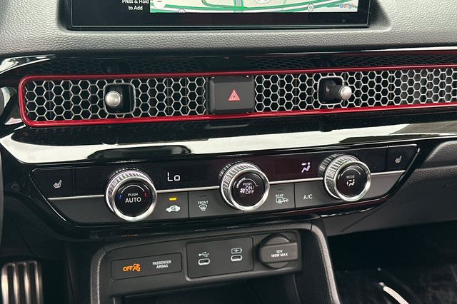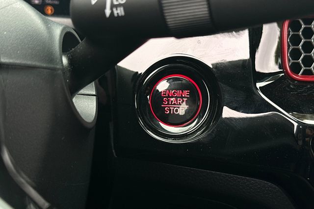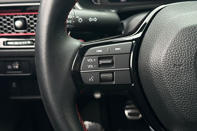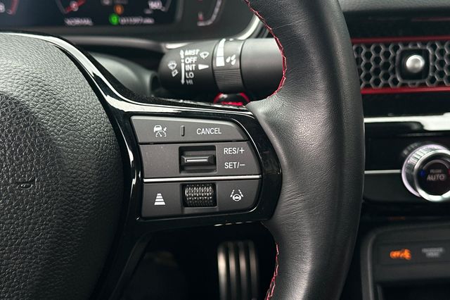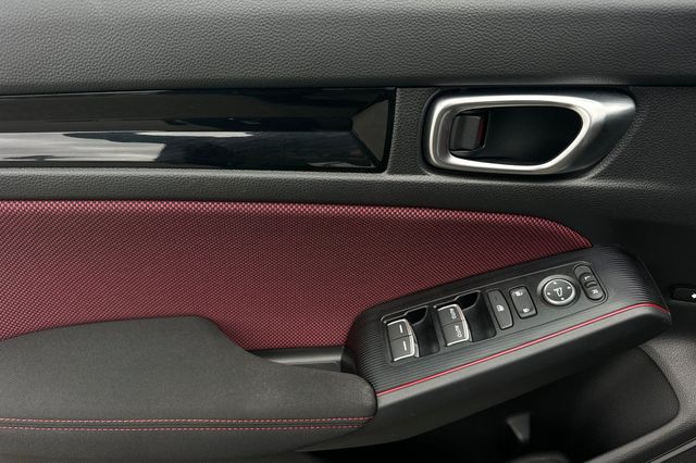 2025 Honda Civic Si impulsado por motor 1.5L turbo de 4 cilindros que genera 200HP con transmision manual de 6 velocidades. Viene en Crystal Black Pearl por fuera con Black/Red Sport Seats por dentro. Los asientos deportivos ofrecen soporte lateral mejorado para manejo deportivo. Incluye camara de reversa, monitoreo de puntos ciegos, alerta de cambio de carril, alerta de colision frontal y control de crucero adaptativo. Sistema de arranque remoto, espejos calefaccionados con senales direccionales LED integradas, volante deportivo forrado en cuero con controles montados. Suspension deportiva calibrada, llantas de aleacion de 18 pulgadas, spoiler trasero, escape deportivo con salida unica centrada. Sistema de audio premium con pantalla tactil de 9 pulgadas, Apple CarPlay/Android Auto inalambrico. 11,586 millas, $31,988. Fabricado en Canada. Contact Freeway Honda to schedule your test drive.