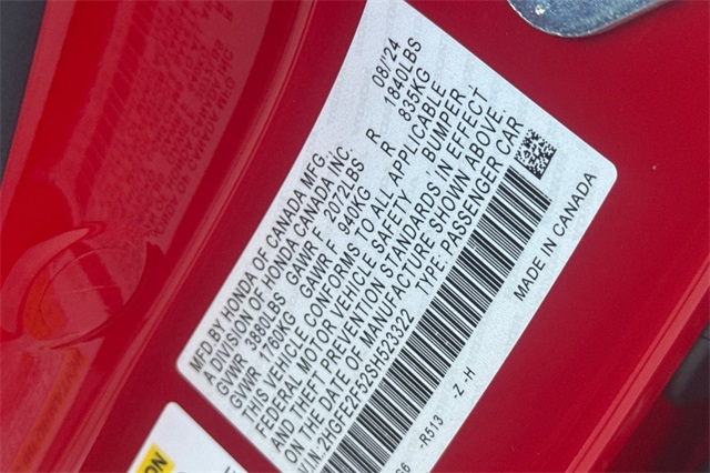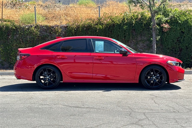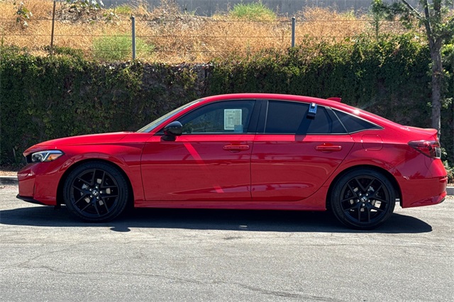 Certified. Rallye Red 2025 Honda Civic Sport Sedan. A one owner locally owned and serviced car powered by a 2.0L i-VTEC engine and an automatic transmission with paddle shifters on it's leather wrapped steering wheel. It's got Black cloth trim, Apple Carplay and Android Auto capability. Safety features include blind spot monitors in the outside mirrors, adaptive cruise control, lane keeping assist, forward collision warning & braking, 18" black alloy wheels, LED headlights, remote starting, a 3-view backup camera with rear cross traffic alert, a fold down rear seatback, and more.