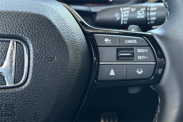 Certified. 2025 Honda Civic Sport Hatchback. A one owner locally owned car in Urban Gray Pearl powered by a 2.0L i-VTEC engine and an automatic transmission with paddle shifters on it's leather wrapped steering wheel. It's got Black Cloth/Leatherette Seating trim, Apple Carplay and Android Auto capability, adaptive cruise control, lane keeping assist, forward collision warning & braking, 18" black alloy wheels, LED headlights, remote starting, a 3-view backup camera, a fold down rear seatback, and more.