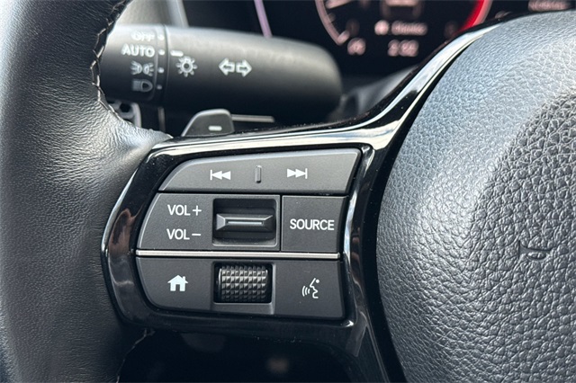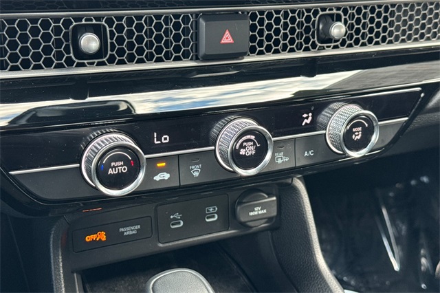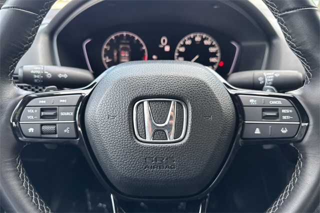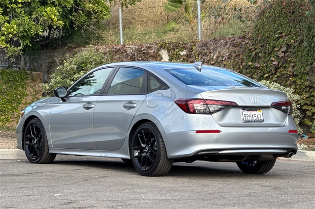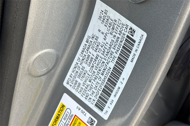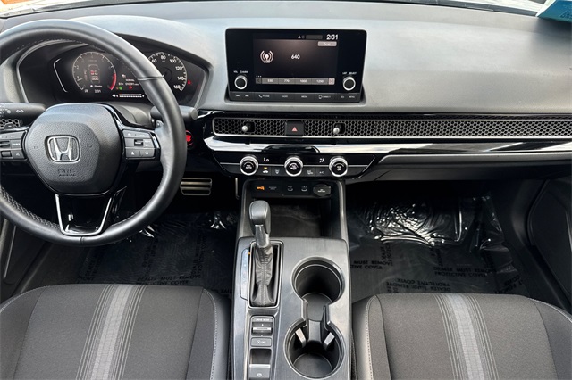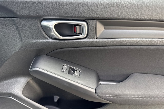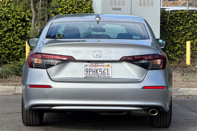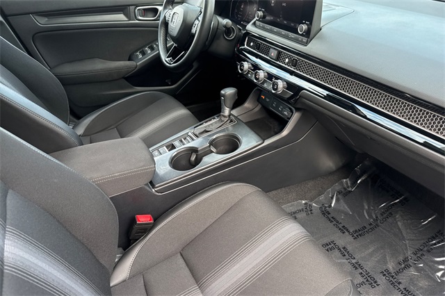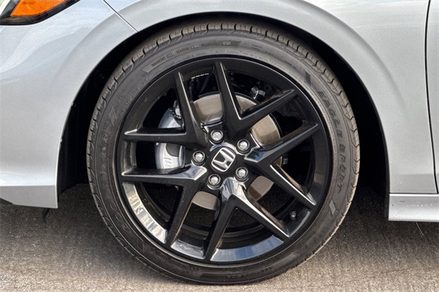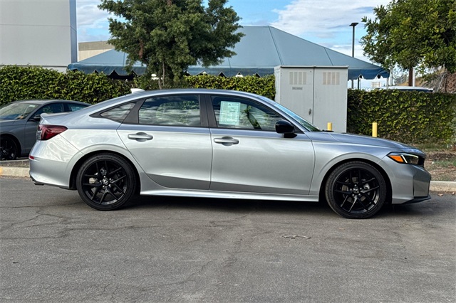 Certified. Solar Silver Metallic 2025 Honda Civic Sport Sedan. A one owner locally owned and serviced car powered by a 2.0L i-VTEC engine and an automatic transmission with paddle shifters on it's leather wrapped steering wheel. It's got Black cloth trim, an 8-speaker audio system with Apple Carplay and Android Auto capability, adaptive cruise control, blind spot monitors in it's heated mirrors, lane keeping assist, forward collision warning & braking, 18" black alloy wheels, LED headlights, remote starting, a 3-view backup camera with cross traffic alert, a fold down rear seatback, and more