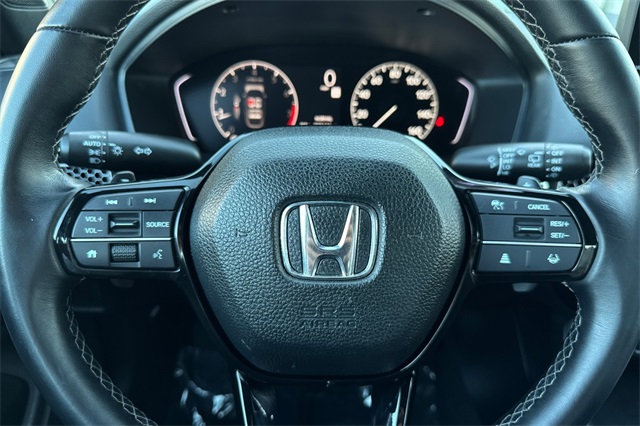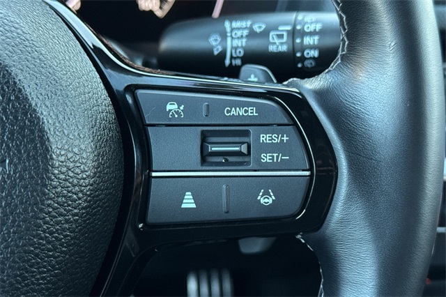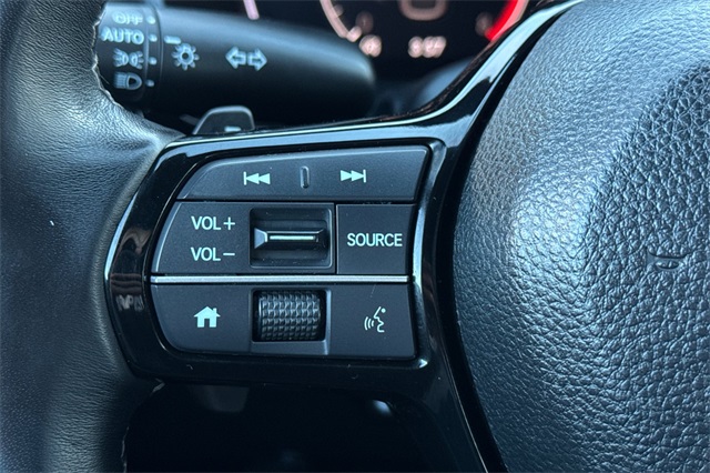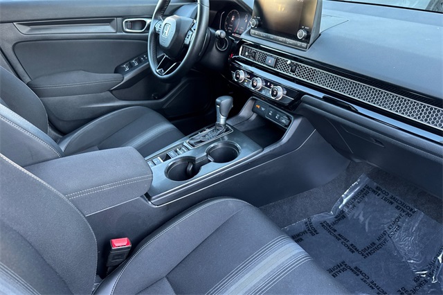 Certified. Crystal Black Pearl 2025 Honda Civic Sport Sedan. A one owner locally owned and serviced car powered by a 2.0L i-VTEC engine and an automatic transmission with paddle shifters on it's leather wrapped steering wheel. It's got Black cloth trim, an 8-speaker audio system with Apple Carplay and Android Auto capability, adaptive cruise control, lane keeping assist, forward collision warning & braking, 18" black alloy wheels, LED headlights, remote starting, heated mirrors with blind spot monitors, a 3-view backup camera with cross traffic alert, a fold down rear seatback, and more.