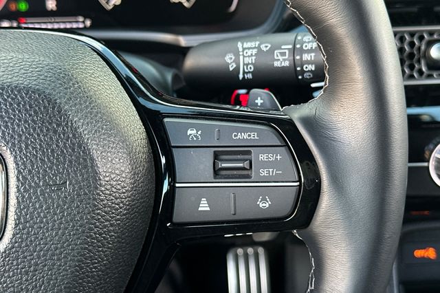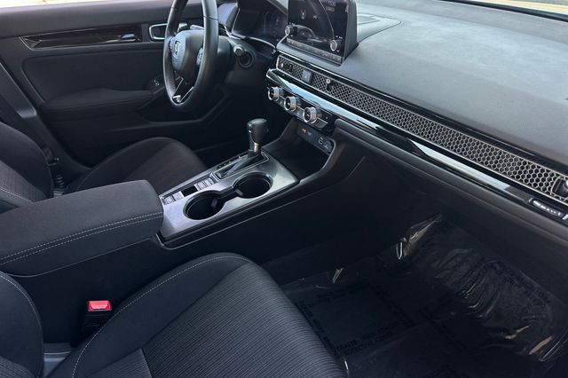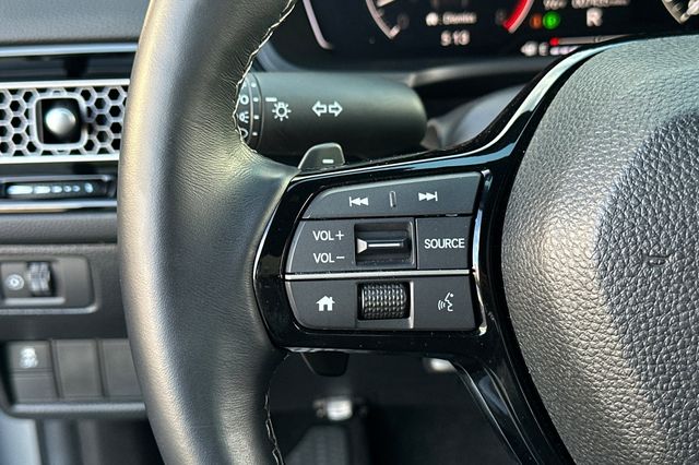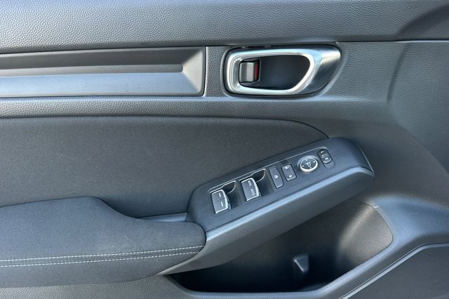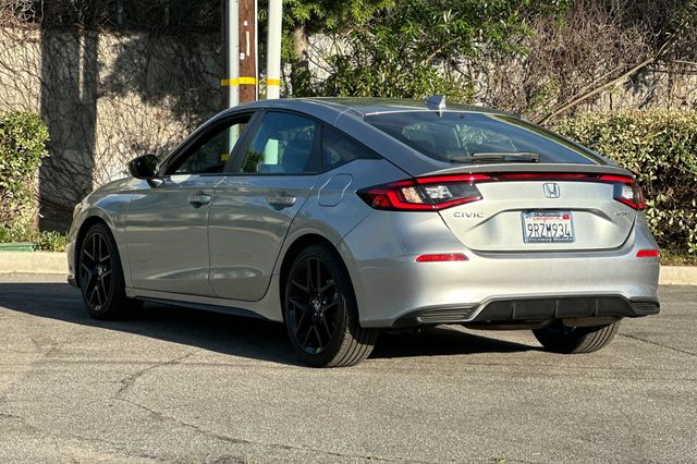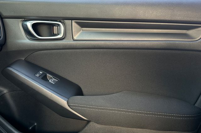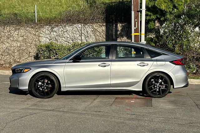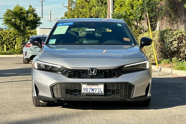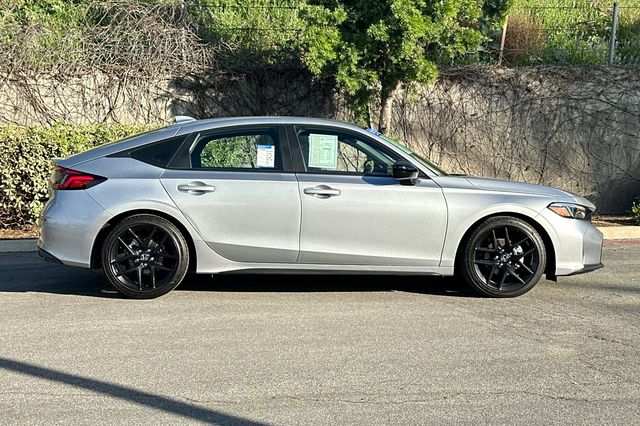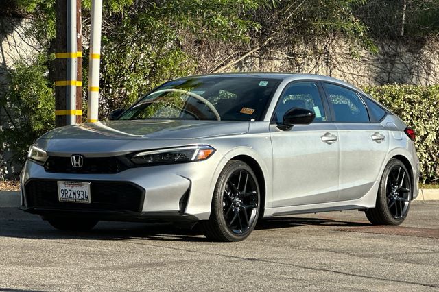 Certified. 2025 Honda Civic Sport Hatchback. It's powered by the 2.0L i-VTEC engine paired with an automatic transmission with paddle shifters on it's leather wrapped steering wheel. It's Solar Silver Metallic outside with Black cloth interior. This exceptionally low-mileage example shows just 7,433 miles on the odometer. There are smart entry keys with remote starting capability a touch screen audio system with Apple Carplay & Android Auto capability. Honda Sensing safety suite includes adaptive cruise control, forward collision warning, lane departure warning, and blind spot monitoring in the heated outside mirrors. There's a backup camera for easy parking. The Sport trim adds aggressive 18" Black alloy wheels. The versatile hatchback configuration maximizes cargo flexibility with fold-down rear seats. Built right here in the USA for quality you can trust. All this Honda reliability and fuel efficiency for $27,988. Contact Freeway Honda to schedule your test drive.