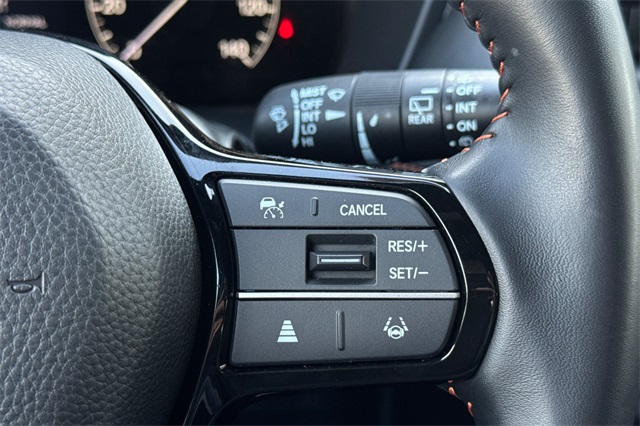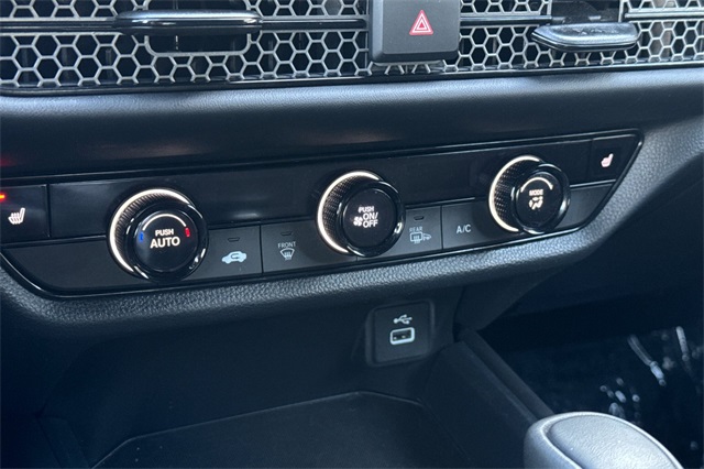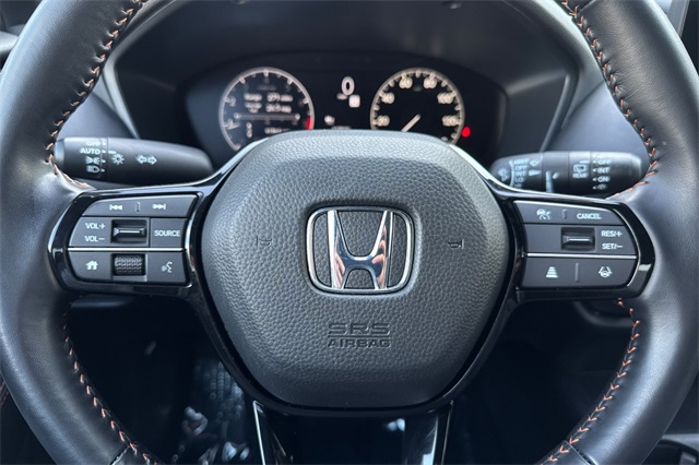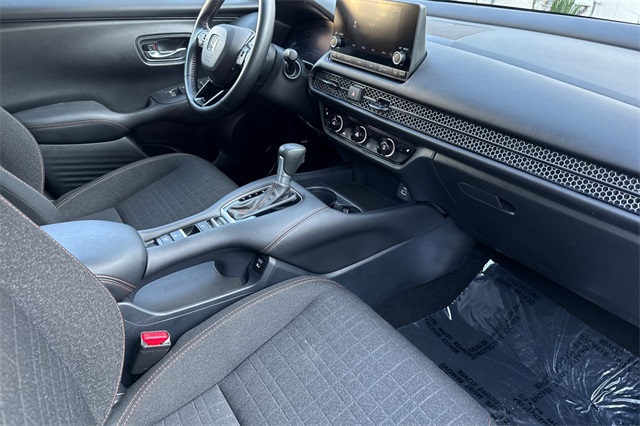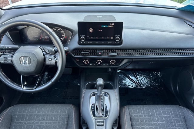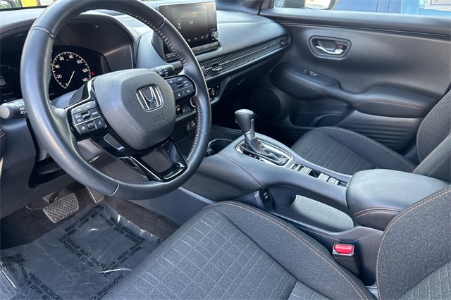 Certified. This is a 2nd generation (the new style!)2023 Honda HR-V Sport in Platinum White Pearl It's powered by a 2.0L 16V i-VTEC engine. The interior has orange trimmed and heated Sport seats, a 180 watt, 6-speaker audio system with Apple Carplay and Android Auto capability, bluetooth for phone and music streaming, a split fold down rear seat. It's got safety features like the blind spot info system, adaptive cruise control with Stop & Go, lane keeping assist, a 3-view backup camera with rear cross traffic alert, and also forward collision warning & braking . You've also got dark privacy glass, black alloy wheels, LED headlights for great night time vision, and even remote starting so you can cool your car off before getting inside it on those hot summer days.