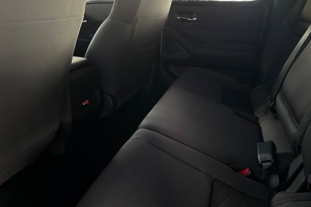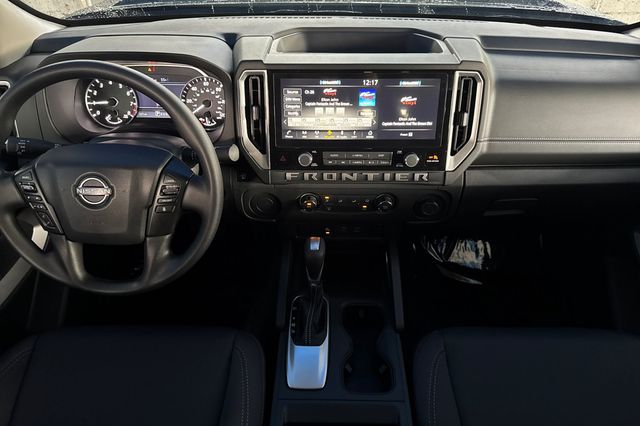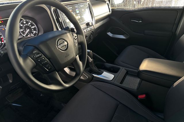 2025 Nissan Frontier. It's powered by the 310HP 3.8L V6 engine paired with a 9-speed automatic transmission in 4x2 configuration. It's Super Black outside with Charcoal Cloth interior. This truck has exceptionally low mileage at just 213 miles - it's like new. Safety technology includes backup camera, blind spot monitoring, lane departure warning, forward collision warning, and adaptive cruise control. The crew cab design provides spacious seating for up to 5 with a power driver's seat and split-folding rear seats for increased cargo flexibility. Built in the United States, this Frontier delivers reliable truck capability with modern convenience features. The 12.3" touch screen display is capable of wireless Apple Carplay & Android Auto operation plus a Wi-Fi hotspot. The 3.8L V6 provides strong towing capacity while maintaining decent fuel economy. Priced at $32,988. Contact Freeway Honda to schedule your test drive.