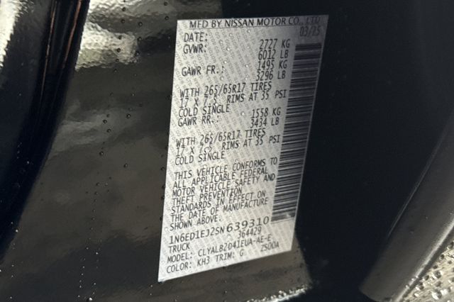 - VIN : 1N6ED1EJ2SN639310