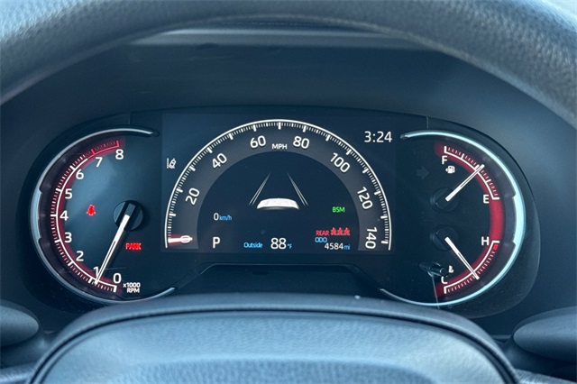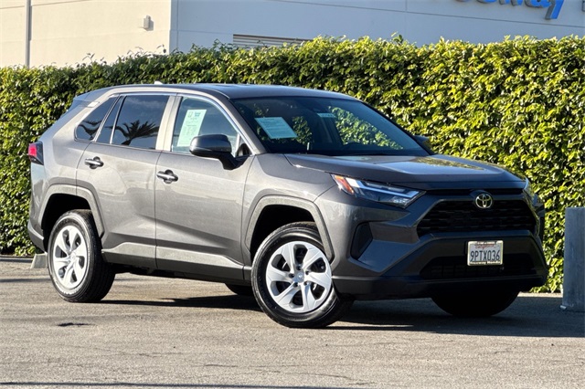 2025 Toyota RAV4 LE. It's got a 203HP 2.5L DOHC for strong acceleration and up to 35MPG on the freeway. It's Magnetic Gray Black w/Fabric Seat Trim. This car is like new! It's got less than 4,600 miles, it's equipped with features like blind spot monitors in the outside mirrors, and auto-dimming mirror on the inside, a touch screen audio system with AM/FM/XM radio, wireless Apple Carplay & Android Auto capability, dark privacy glass to keep you cooler inside, LED headlights to help your night time vision and much more.