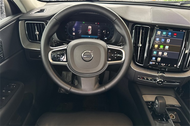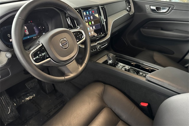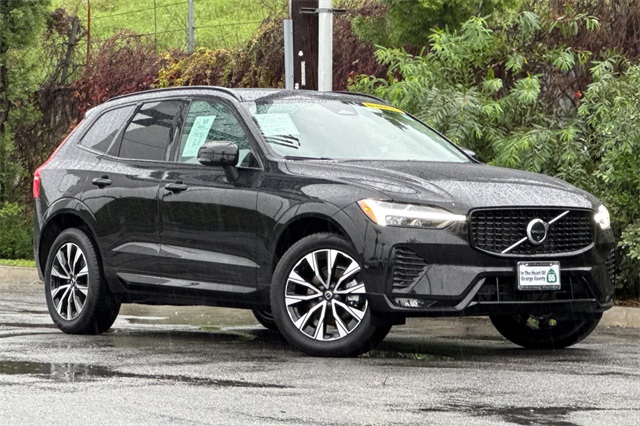 Get yourself into the lap of a luxury SUV. 2025 Volvo XC60 B5 Plus with All-Wheel-Drive. It's powered by a 2.0L engine that makes 247HP for smooth, strong power plus a smooth shifting automatic transmission and full time all wheel drive system for extra traction and control in slippery conditions. It's Onyx Black outside with charcoal colored leather trim on the inside. Both front seats are heated and powered, with memory on the driver's side. It's got safety features like blind spot monitors in the outside mirrors, lane keeping assist, plus forward collision warning & braking with pedestrian or moose detection just in case you have one crossing the road in front of you. a 360 degree surround view camera and front and rear parking sensors help you in the tight spots. You've got luxuries like a panoramic moonroof with power sunshade, a hands-free power tailgate, a built in garage and gate opener, and air purifier system, navigation, and much more.